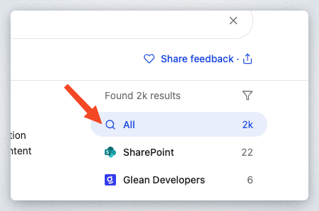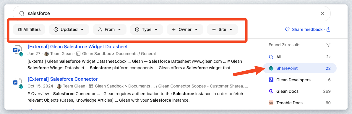 Since the items in Glean Docs are just Documents, that is the only filter available. Click on SharePoint now.
