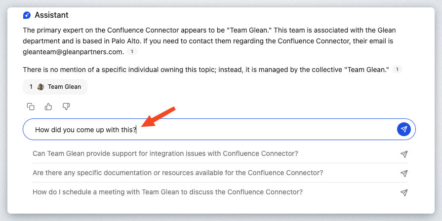 If you ever want to understand a bit of "why" Glean has responded in a certain way, or in this case, expert identification. Go ahead and ask Glean in the "Ask a follow-up question" box: